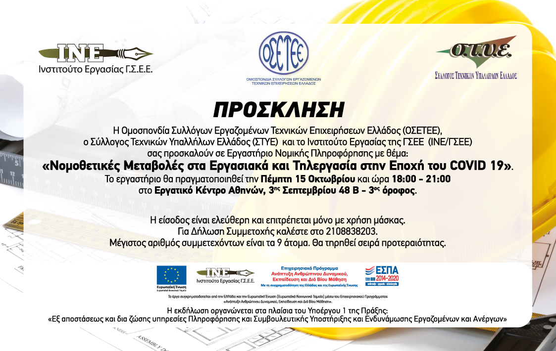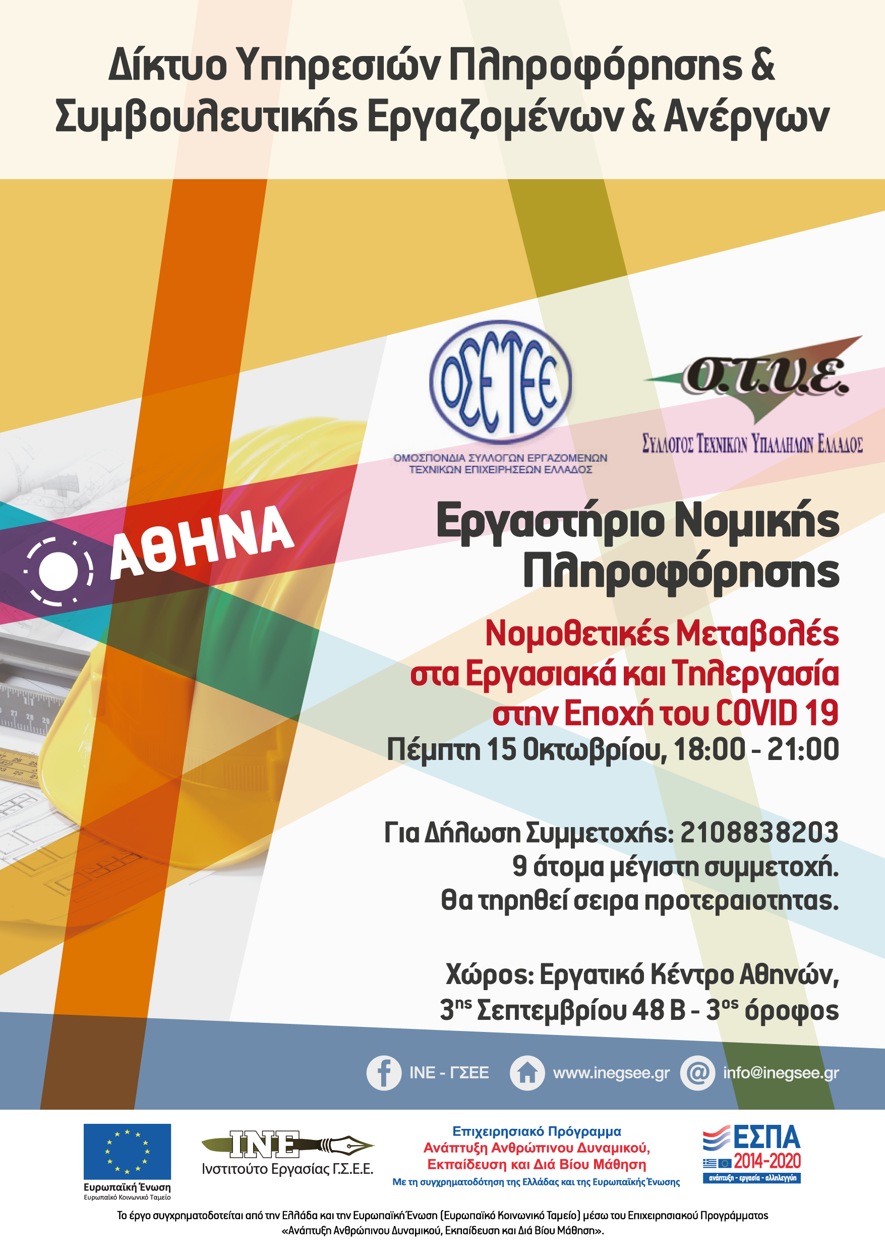Δράση ΟΣΕΤΕΕ- ΙΝΕ ΓΣΕΕ με δωρεάν εξατομικευμένη νομική πληροφόρηση σε εργασιακά, ασφαλιστικά και συνταξιοδοτικά θέματα για τους εργαζόμενους στην «Εγνατία Οδός Α.Ε.»