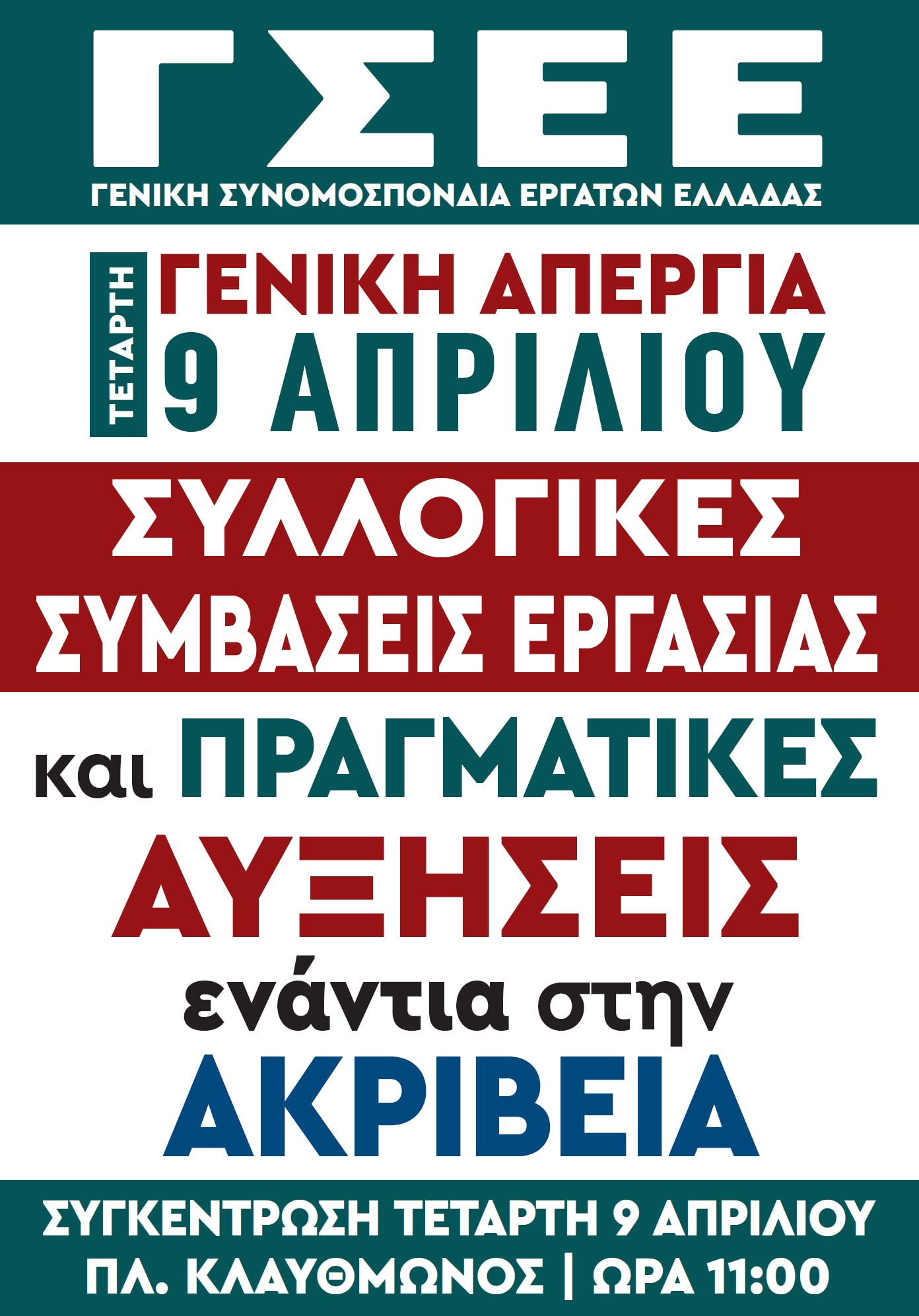 ΓΕΝΙΚΗ ΑΠΕΡΓΙΑ ΓΣΕΕ ΤΕΤΑΡΤΗ 9 ΑΠΡΙΛΙΟΥ